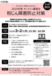 2026年02月20日更新「粉じん障害防止対策オンライン講習会」開催のお知らせ 粉じん障害防止対策について、専門講師が解りやすく解説します!
